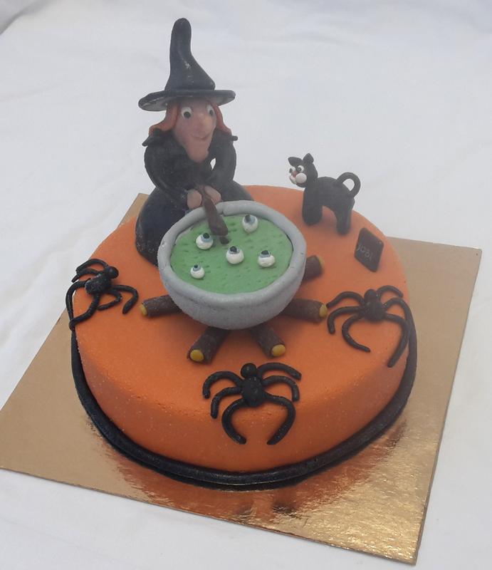 De prijzen van de Halloweenijstaarten staan onder de foto's vermeld